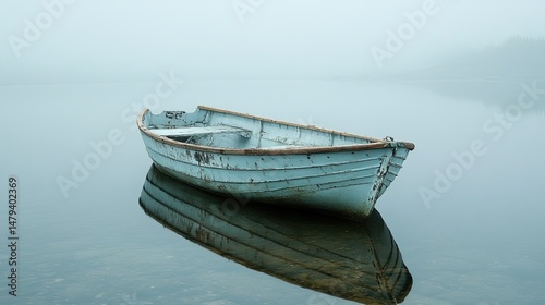 Naklejka premium old boat on the lake Calm Reflections
