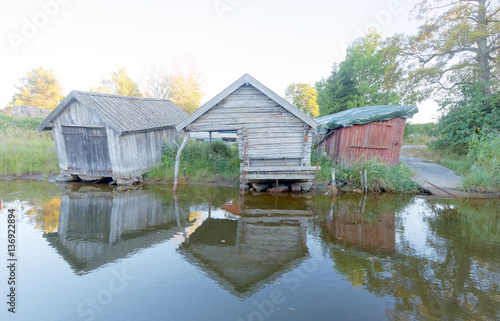 © hans_chr, Obraz premium Old boathouse made of gray timber and planks