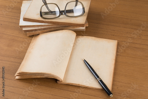 Fototapeta premium old book on wood table