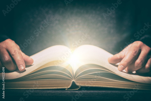 © REDPIXEL, Obraz premium Old book wooden library desk concept.