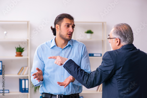 Obraz premium Old boss and his young assistant in the office