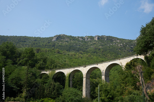 © Роман Мельник, Fototapeta premium old brick bridge viaduct in the woods