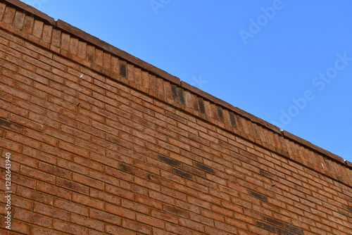 © Trevor Cook, Obraz premium Old brick wall with beautiful blue sky.