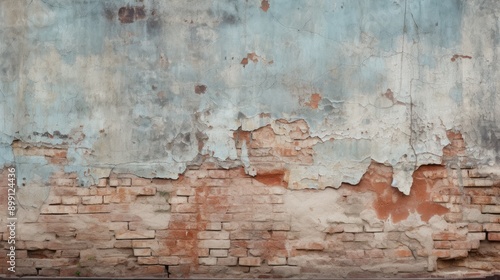 © Prapan, Obraz premium Old brick wall with peeling paint, revealing layers of history and characte