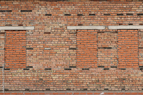 © ok_fotoday, Obraz premium Old brick wall with walled windows