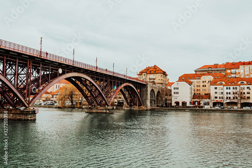 Naklejka premium Old Bridge or Main Bridge over the Drava River in the city of Maribor,...