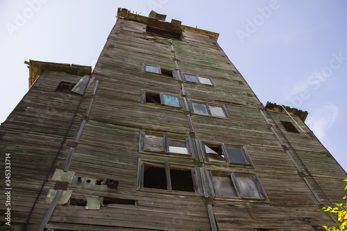 Obraz premium Old broken empty abandoned industrial building interior. abandoned factory