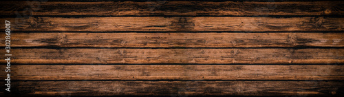 © Corri Seizinger, Fototapeta premium old brown rustic dark brown wooden texture - wood background panorama banner long