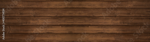 © Corri Seizinger, Naklejka premium old brown rustic dark wooden texture - wood background panorama long banner
