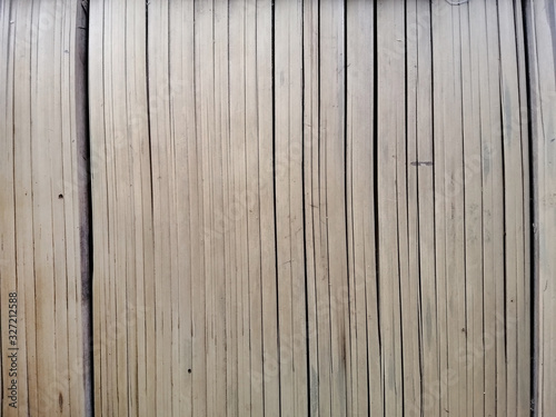 © Montree, Naklejka premium old brown tone bamboo plank fence texture for background. vintage dry Bamboo wall background.