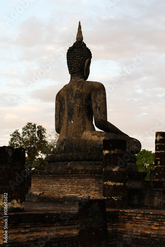 Fototapeta premium Old buddha statue in Sukhothai Historical Park.