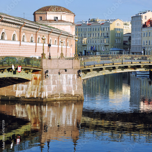 © Madrugada Verde, Naklejka premium Old building and Bridge with reflection in Saint Petersburg