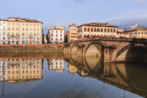 Fototapeta premium Old buildings reflecting in the Arno River in Florence. Houses with...