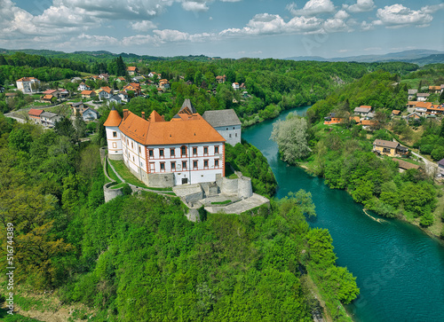 © Dario Bajurin, Obraz premium Old Castle and town Ozalj on a cliff over the Kupa