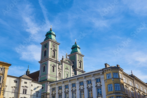 © T.Dz, Naklejka premium Old Cathedral also called the Church of Ignatius or the Jesuit Church is a church in Linz, Austria.