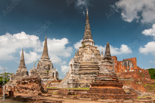 Fototapeta premium Old Chedi at the ruins Wat Phra Si Sanphet Temple, Thailand, Ayutthaya.