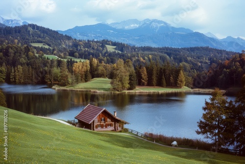 © ArtSpree, Fototapeta premium Old church in a field under a cloudy sky - film photo. Beautiful simple AI generated image in 4K, unique.