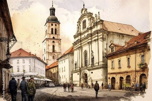 © AlexaSokol83, Fototapeta premium Old city in Vilnius.