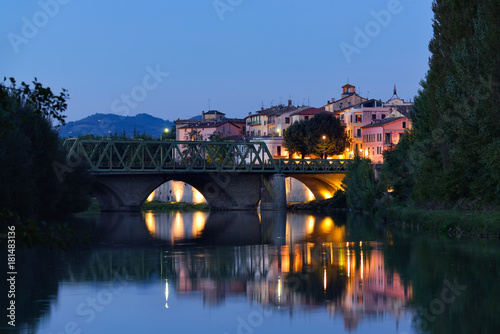 Obraz premium Old city reflection in Tevere river, Umbertide, Italy