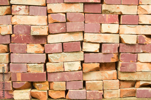 Fototapeta premium Old clay bricks stacked in the wall as a background.
