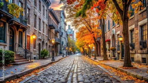 © nittiya, Fototapeta premium Old cobblestone streets of Montreal in fall season , Old Montreal, autumn, Quebec, Canada, historic