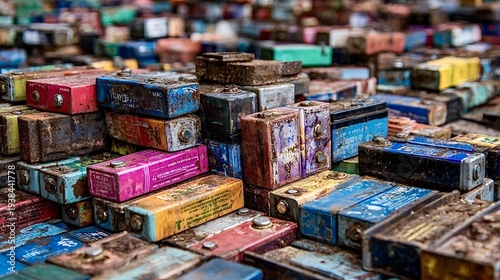 © Oleh, Fototapeta premium Old corroding batteries creating toxic waste and pollution