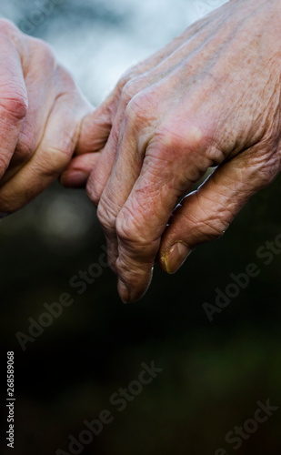 © bettysphotos, Fototapeta premium Old couple holding hands closely, close up