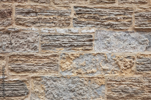 Obraz premium Old crumbling limestone slab wall