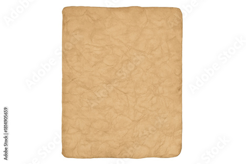 © PNG Kingdom , Obraz premium Old crumpled parchment paper texture with distressed antique brown background, vintage aged blank document, transparent base