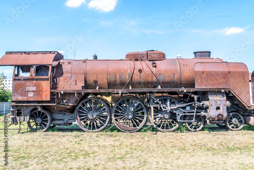 Naklejka premium Old Czechoslovakian CSD steam engine on graveyard, rusty