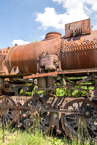 Naklejka premium Old Czechoslovakian CSD steam engine on graveyard, rusty, boiler detail