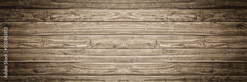 © torjrtrx, Fototapeta premium Old dark brown wood wall for seamless panorama wood background and texture.