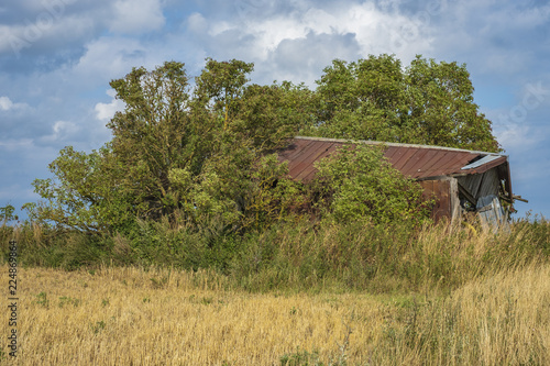 © UllrichG, Obraz premium Old decayed shed on a field