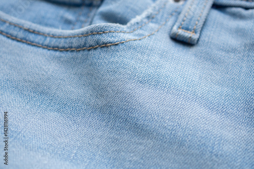 © Kwangmoozaa, Fototapeta premium Old denim blue jeans fabric texture background close up