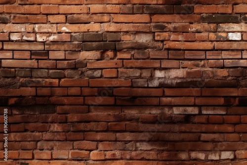 Obraz premium Old dirty red brick wall seamless pattern. Weathered tile endless texture. AI generative image.