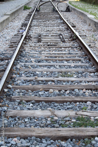 Fototapeta premium old disused train tracks in a park