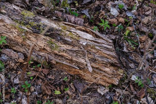 Fototapeta premium old dry tree trunks and stomps in green spring forest