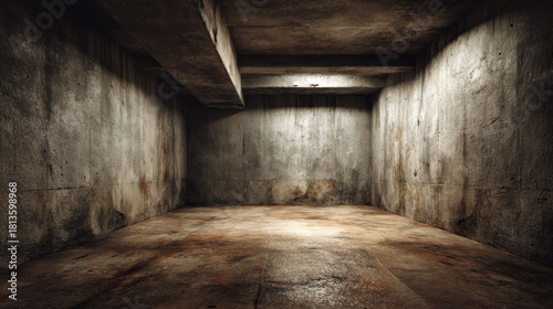 Obraz premium Old, empty grunge basement room with ample copy space.