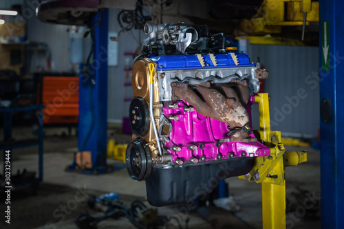 Fototapeta premium Old engine after overhaul in car workshop