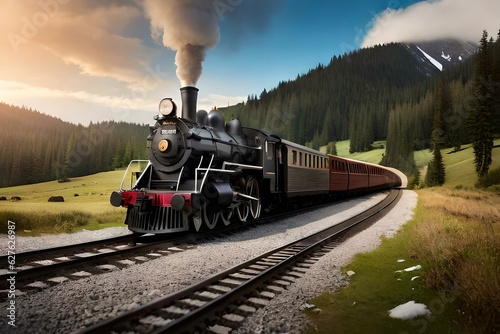 © Royalty-Free, Obraz premium Old engine train. Generative AI