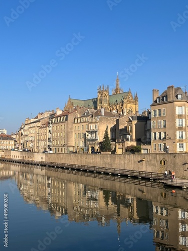 © Alesia Berlezova, Naklejka premium old Europe city Metz France churches and historical monuments of architecture of ancient beautiful, photo on mobile phone