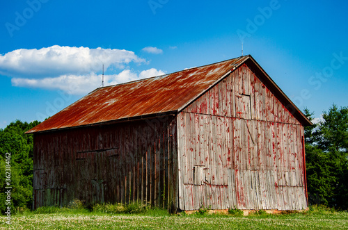 Obraz premium Old faded wooden red barn in the Midwest