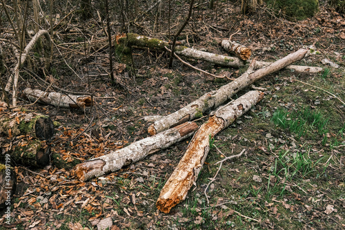© Martins Vanags, Obraz premium old fallen tree trunk stomp in wild forest