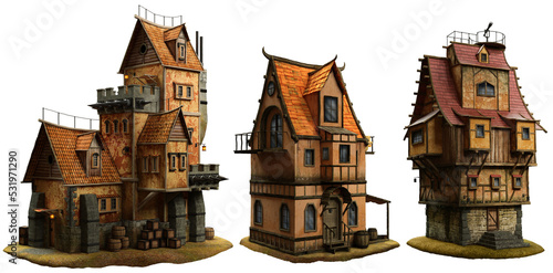 © warpaintcobra, Naklejka premium Old fantasy buildings 3D illustration