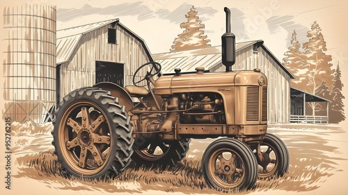 © Visual Verse, Fototapeta premium old farm tractor in field