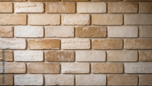 Fototapeta premium Old-fashioned cream and white brick wall surface with stonework flooring and...