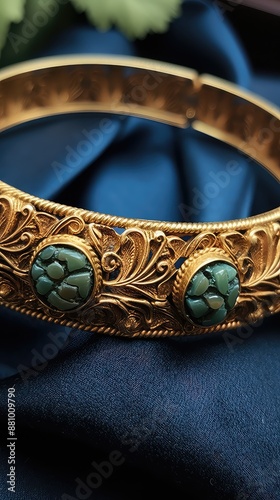 © Murtaza03ai, Obraz premium old fashioned gold plated bracelet with green