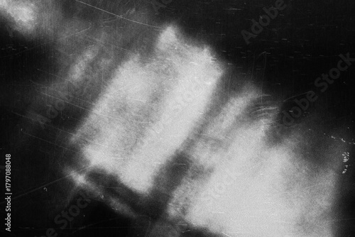 Obraz premium Old film texture with scratches, noise and light leaks. Realistic transparent overlay film texture in black-white, dust and grain. Distressed retro movie or photo negative effect of cinema nostalgia