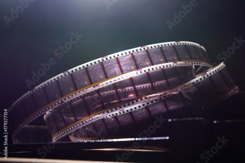 Obraz premium Old film with a movie on a dark background