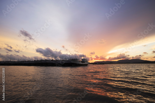 © browneyefoto, Naklejka premium Old fishing boat at sunset